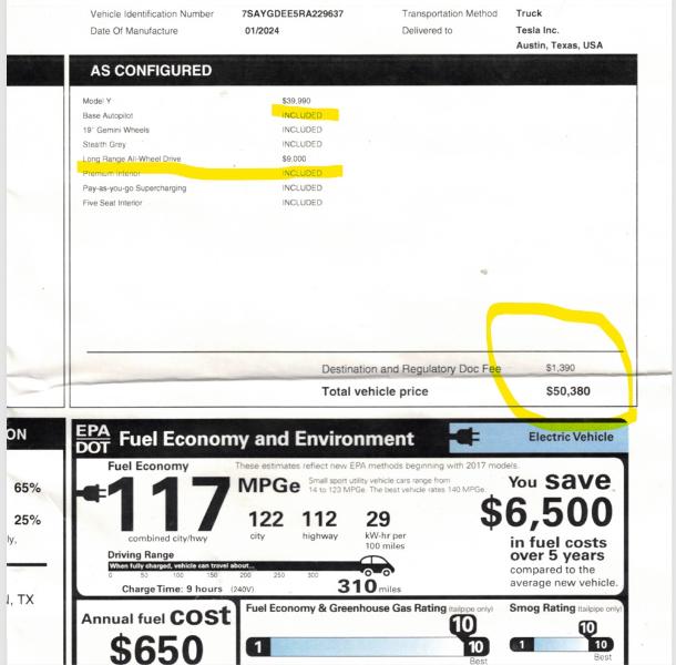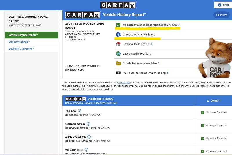 Vehicle Inquiry for 2024 Tesla Model Y Long Range AWD, Dual Motor, Like New